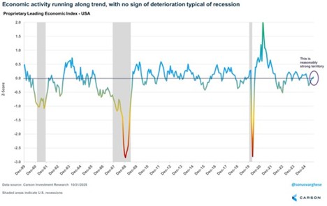 Here’s our Carson Investment Research Proprietary Leading Economic Index (LEI) for the US, which shows our economy is indeed improving under the surface. Take note: This LEI never predicted a recession in 2022 and 2023 like so many other indicators did.