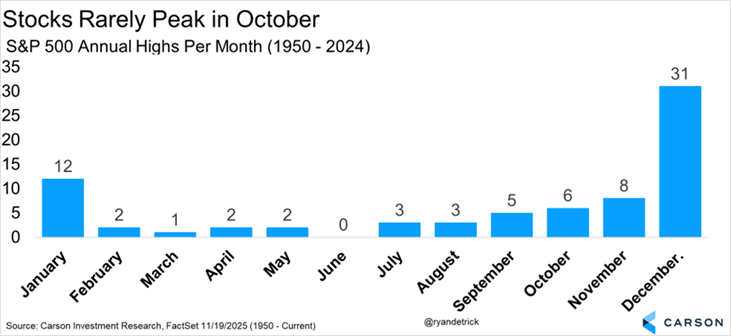 We remain optimistic this bull market is far from over and we could see a strong year-end rally, with likely new highs before 2025 is over. That would be quite normal, as only six times did the S&P 500 peak for the year in October, and we don’t think this will be seven.