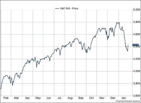 The Federal Reserve held rates steady while signaling a rate hike is likely in March. Fed Chair Jerome Powell’s press conference contributed to last week’s volatility. He indicated greater concern about inflation and didn’t rule out increasing rates by 0.5% in a single meeting or hiking more rapidly than the market expected.