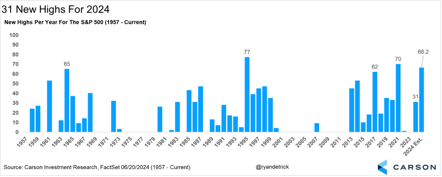 • More than 30 new all-time highs in a year has seen an average gain over the year of nearly 20%. 2024 already has 31 new all-time highs.