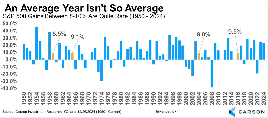 With the S&P 500 up nearly 9% so far in 2025, we’re already at about your average year, as the average since 1950 has been up 9.5%. But here’s the interesting catch—there is no such thing as average when it comes to investing.